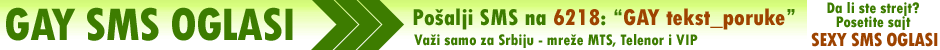 Sve što treba da uradite je da pošaljete SMS na broj 6218 sa porukom GAY tekst_oglasa i vaš oglas će se pojaviti na svim ovim sajtovima!